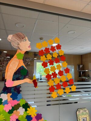 Els dies previs a la festa, les persones del centre van participar activament en la preparació de la decoració. Els espais comuns es van omplir de color i simbolisme gràcies als elements elaborats de manera col·lectiva: garlandes, murals temàtics i detalls decoratius que van transformar l’ambient i van donar un aire festiu a tota la residència.